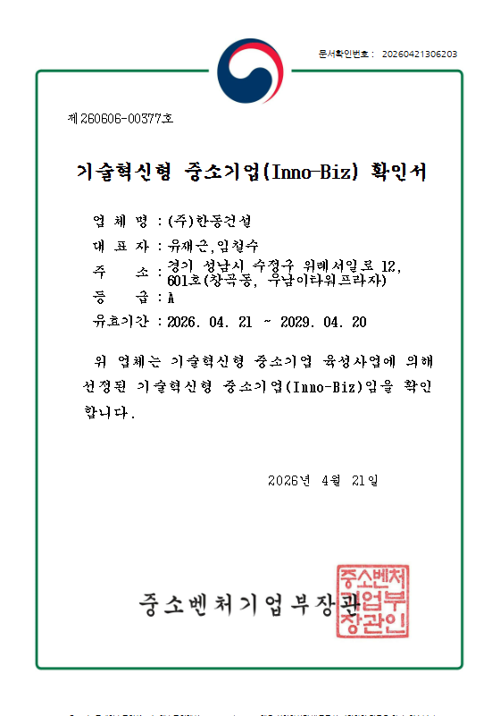기술혁신형 중소기업(INNO-BIZ) 인증 페이지 정보 작성자 관리자 작성일26-04-21 14:13 댓글0건 관련링크 다음글 목록 본문 * 중소벤처기업부 기술혁신형 중소기업(INNO-BIZ) 인증 다음글 목록